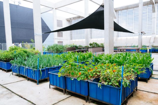 A horta já conta com quase 500 caixas e 4 mil mudas em produção de verduras, legumes, tubérculos, pancs, temperos e chás. Antes da pandemia, os produtos eram utilizados nos pratos do cardápio do restaurante interno da IBM, com a realização de uma compostagem de 250kg de lixo orgânico por semana, evitando que a quantidade fosse levada ao aterro. Nesse momento, com a maioria dos funcionários trabalhando remotamente, toda a produção vem sendo destinada aos trabalhadores essenciais do prédio.